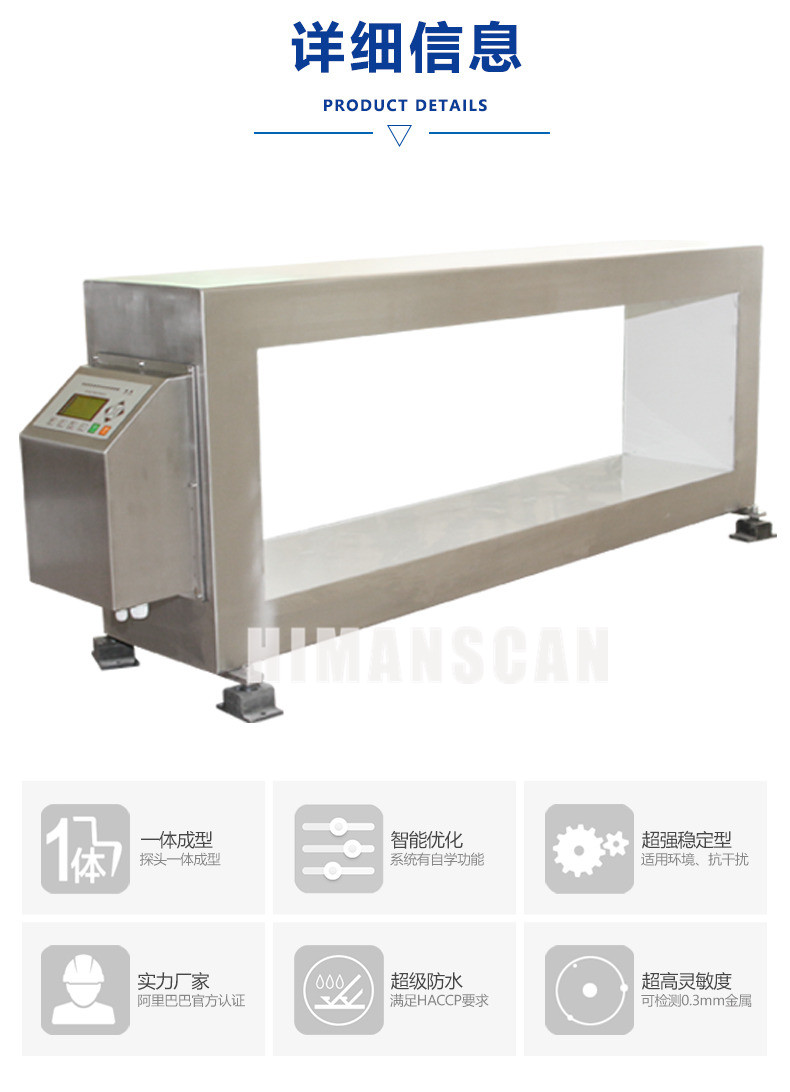 食品、檢測(cè)食品,面包,包子,饅頭,水餃、餅干等產(chǎn)品中金屬雜質(zhì)及金屬異物以及藥品、玩具、服裝、制鞋、化工、皮革、針織等行業(yè)檢測(cè)產(chǎn)品或原料在生產(chǎn)加工過(guò)程中混入的金屬雜質(zhì)。如:鐵及非鐵磁性金屬物品(鐵、銅、鋁、不銹鋼等有色金屬都可檢測(cè)出),提高產(chǎn)品安全系數(shù),提升企業(yè)產(chǎn)品品質(zhì)。